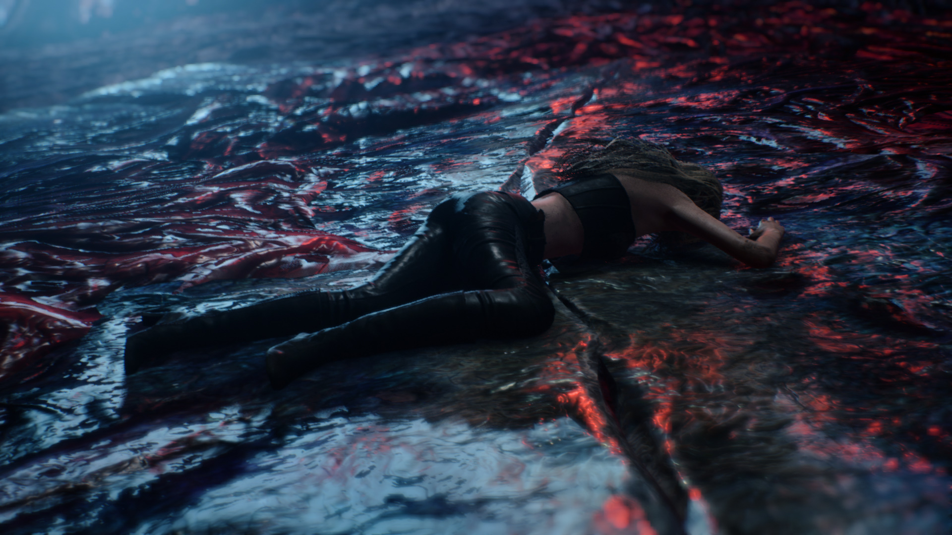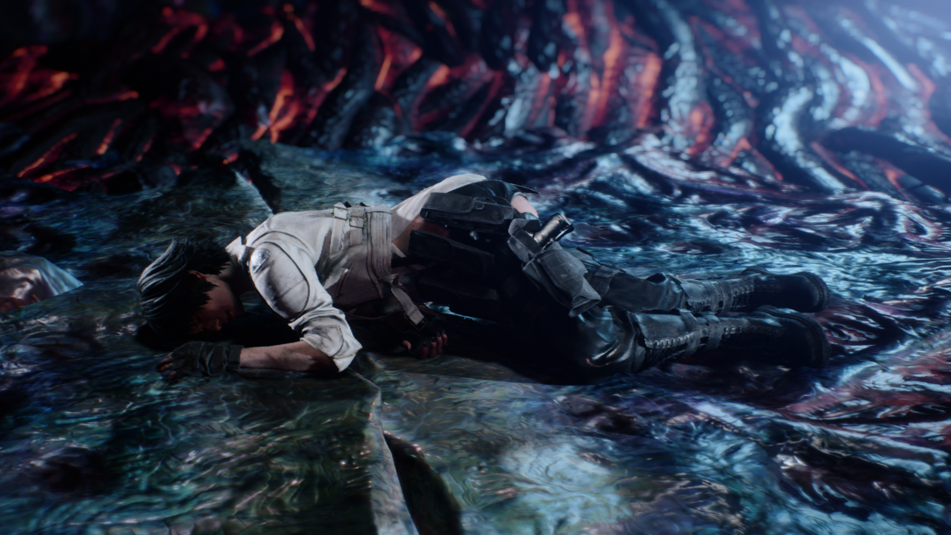 Amint odartl, Dante a fldre kerl. A dmon csak l, s nem mozdul. Lady s Trish a fldn. Dante nem tud felllni, te pedig megrkeztl. A dmon egy csppal tmad a fldn jultan fekv Dantra, de te azt lelvd.