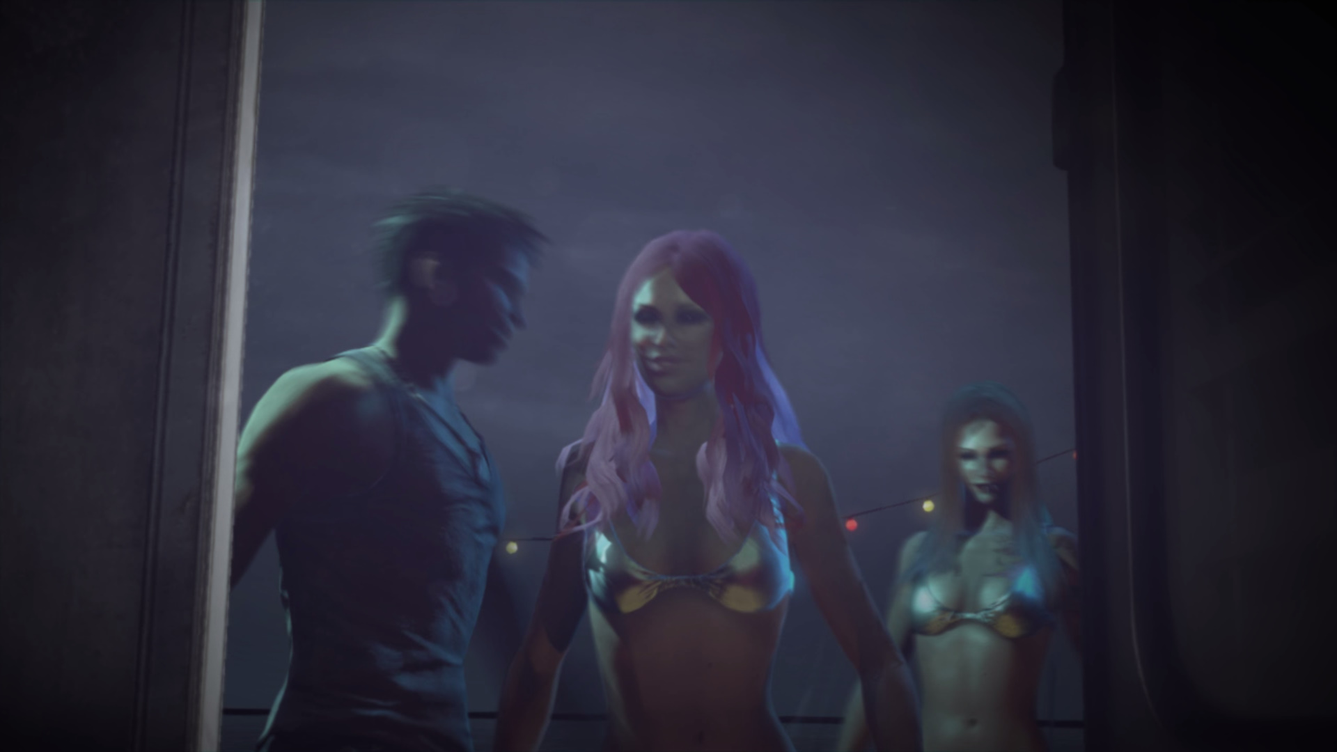 Ezutn egy night klub lthat, ahol tncosnk tncolnak angyalszrnyakkal. Egy frfi iszik, kamerk figyelik a szrakozkat.