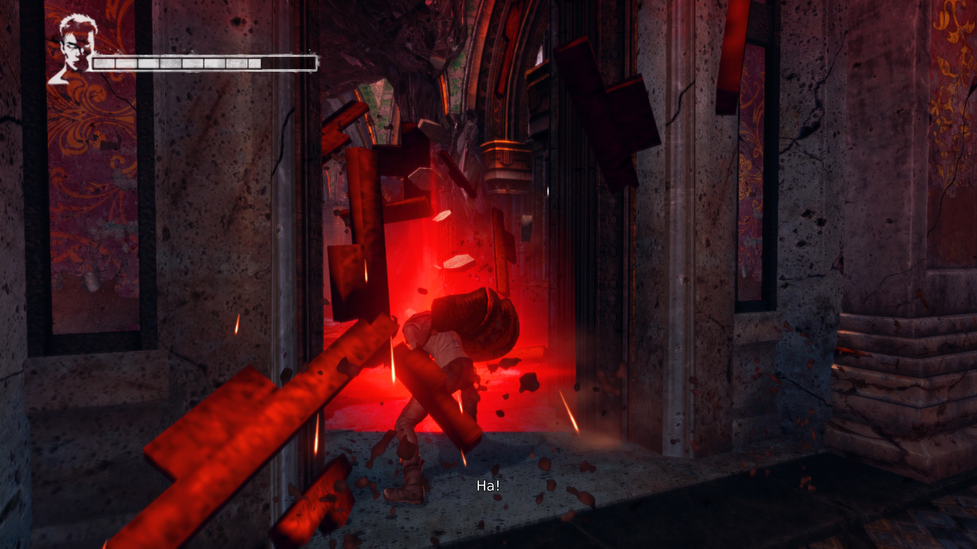 Visszajutottl oda, ahol kezdted ezt a kldetst. Ahol kezdtl, arra pkokat lhetsz le. Menj a nagy lpcss terembe. Ahogy belptl, megvltozik az egsz hely. Kettszakad, lebeg, s ugrndoznod kell. Pajzsos Bathos-ok jelennek meg. Az ellenfl leverse utn ismt meghallod annak a nnek a hangjt.