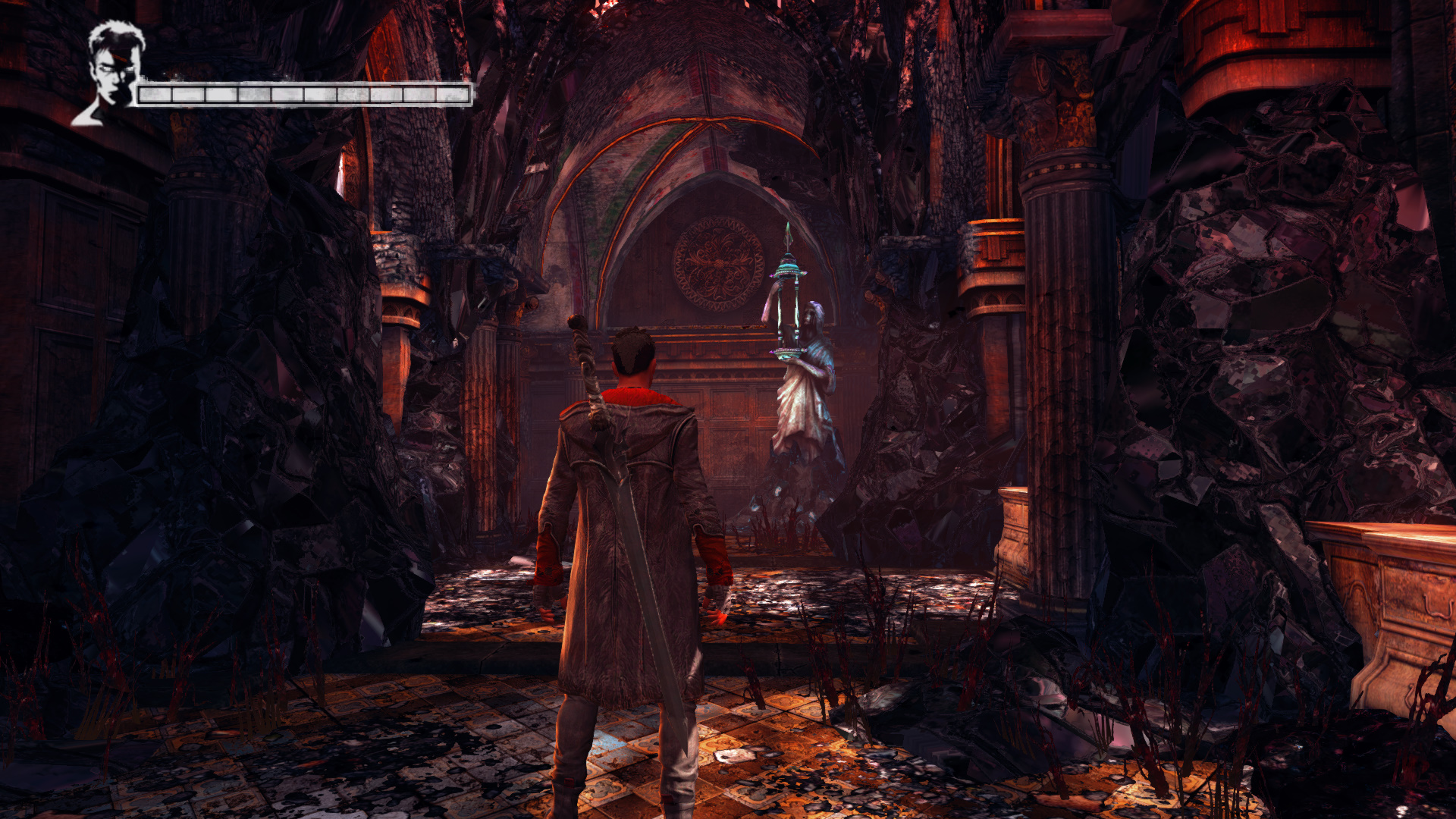 A pillanatot ismt dmonok zavarjk meg. A dmonhoroggal ellenfeled pajzst meg tudod trni, ezzel elveszti eszmlett s knny clpontt vlik. Intzd el ket, majd menj vissza a portrhoz. Annak bemlyedse kken fnylik. Ugyanaz trtnik, ha belenylsz, csak ezttal angyali fegyvert kapsz, mg pedig Oziriszt. Ez egy angyali kasza, ami tmeges ellenfelek leversre hatkony. Amikor aprtasz vele, dmoni energihoz jut, s ha fel van tltdve, nagyobb sebzst okozhatsz. Indulj el visszafele. jra megltod a nt, vagyis desanydat, Evt, akit gy tnik, ldznek.