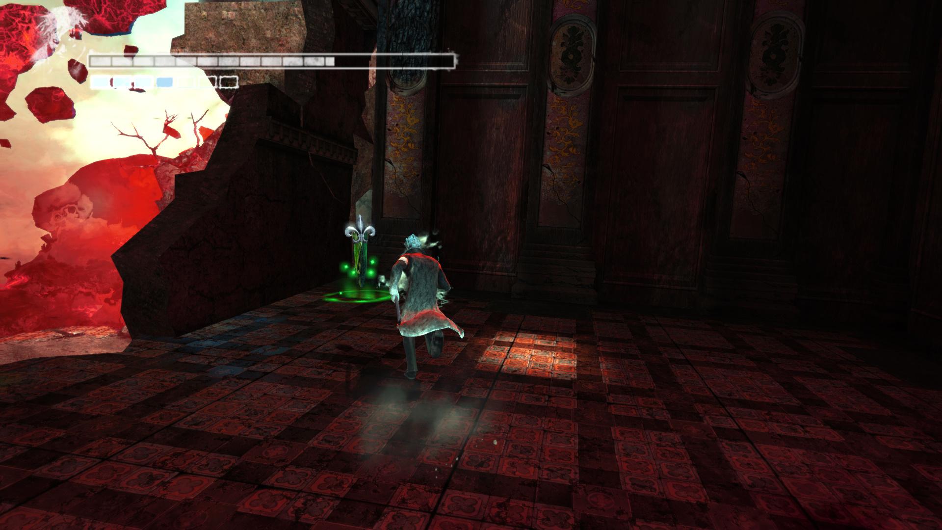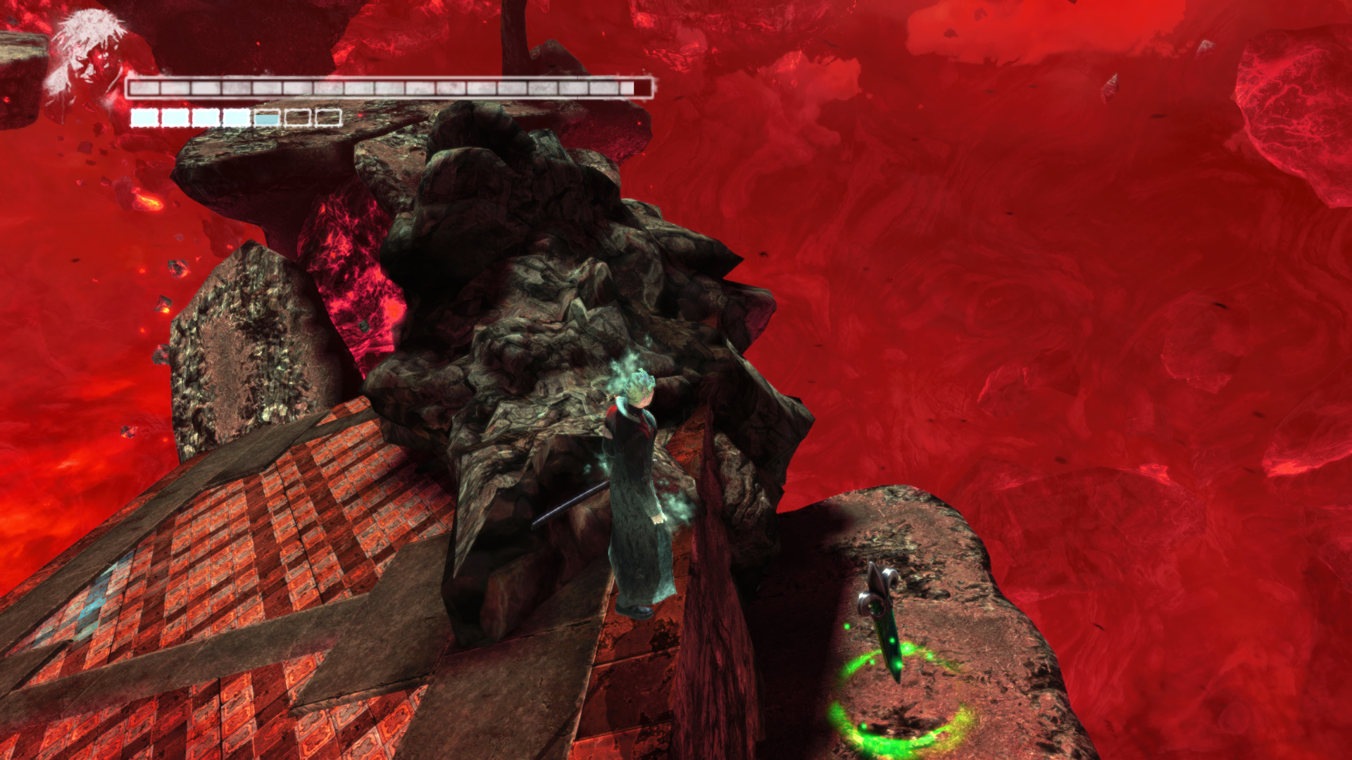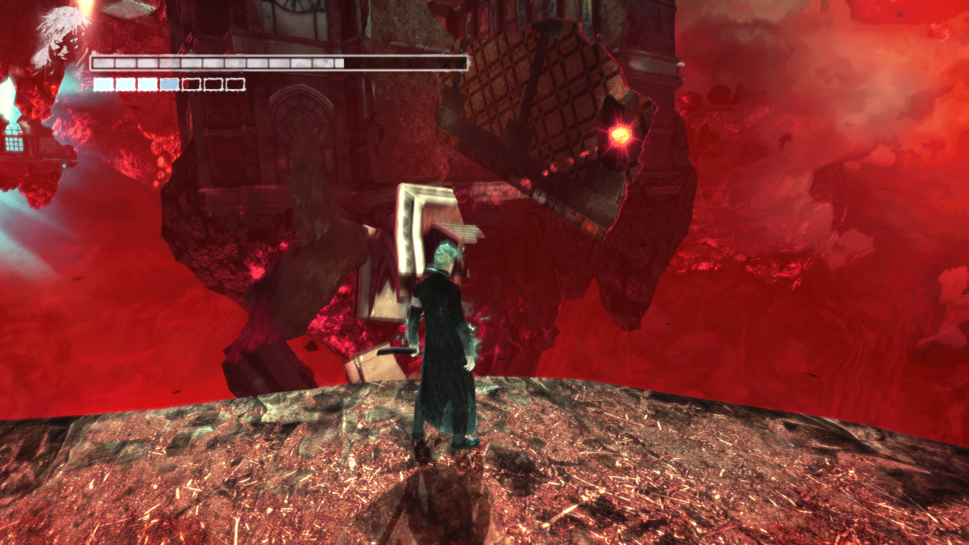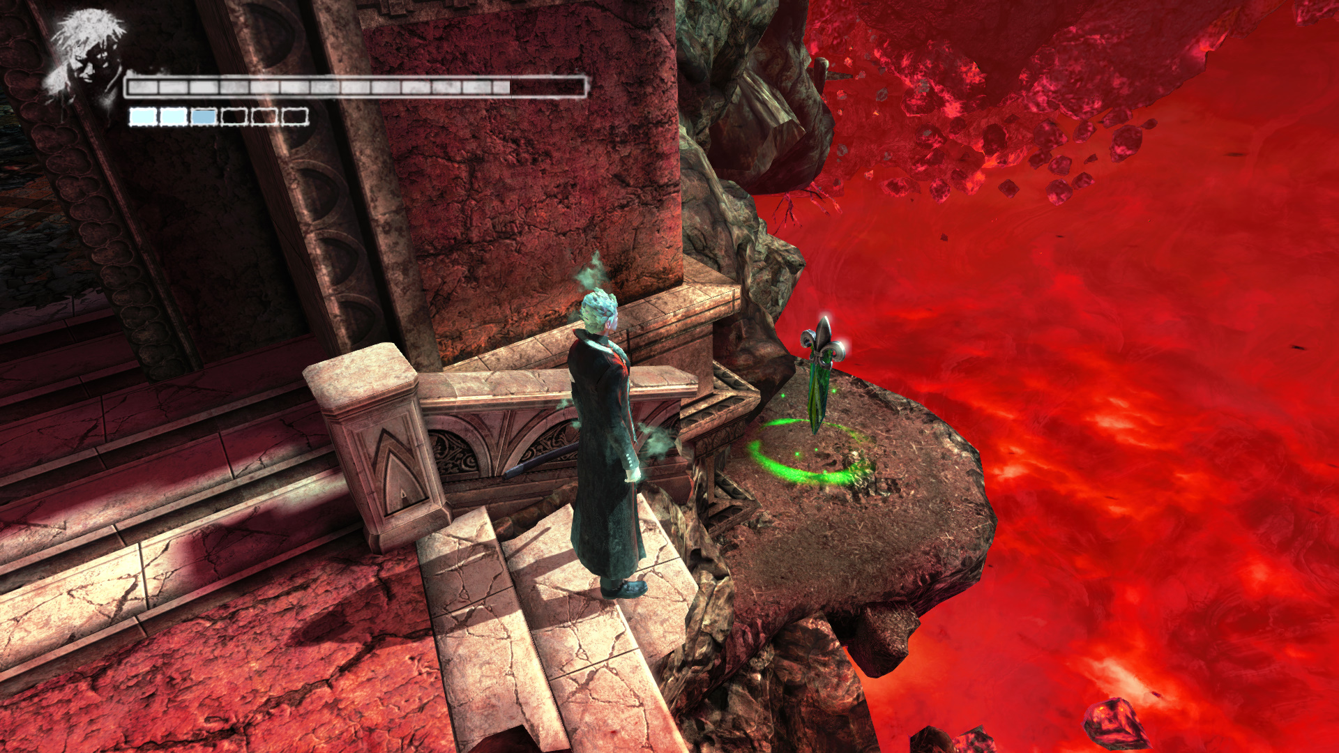 Menj tovbb. A szobornl ha kell, fejlesz s vsrolj, ha kell. Menj ki, mire becsukdik mgtted az ajt. Egy meteorszer szikla repl a platformra. Maga eltt ltod a kk fnyt, ahova menned kell. Ellenfelek jelennek meg. Minden ne ld meg, de legyen meg az a kpessged, hogy taposhatsz az ellenfeleiden. Ugyanis a segtsgkkel fel kell jutnod az ajt fl, hogy ott megleld s felszabadtsd a Elveszett Lelket (20/19.). Miutn meglted ket, az ajttl jobbra, ahol be van trve az plet oldala, ugord t, de teleportlj is, ha kell, hogy biztosan feljuss. Vagy gyesen az plet oldaln a kis peremen elmenve el jutsz oda. Odabenn egy let Kristly Tredket (20/17.) tallsz. A msik irnyba indulva a hz oldalnl Kis Dmoni Csillagot tallsz.