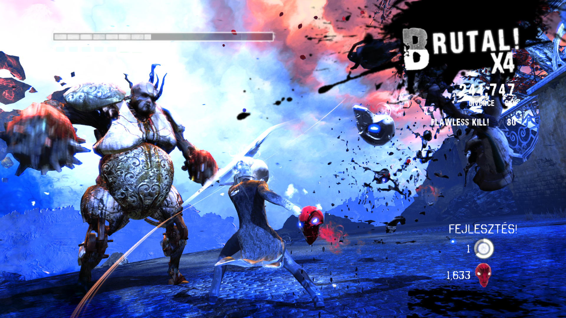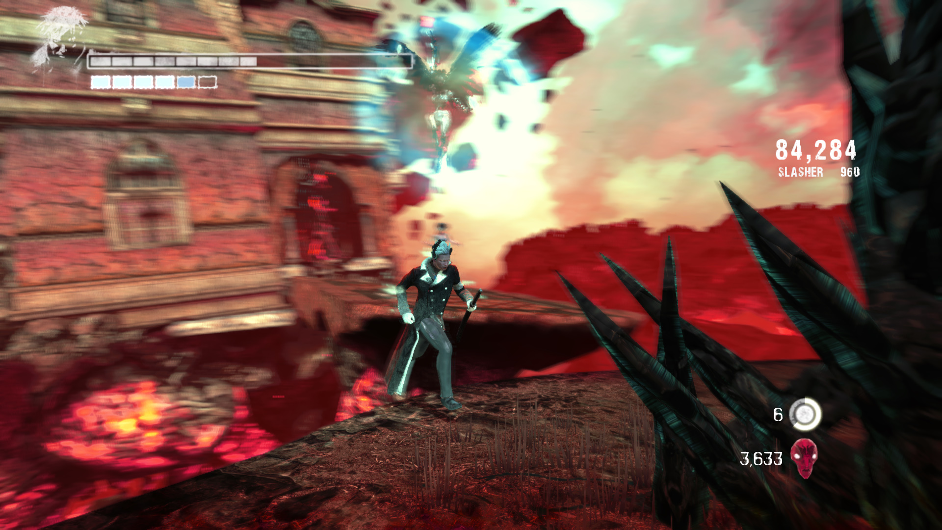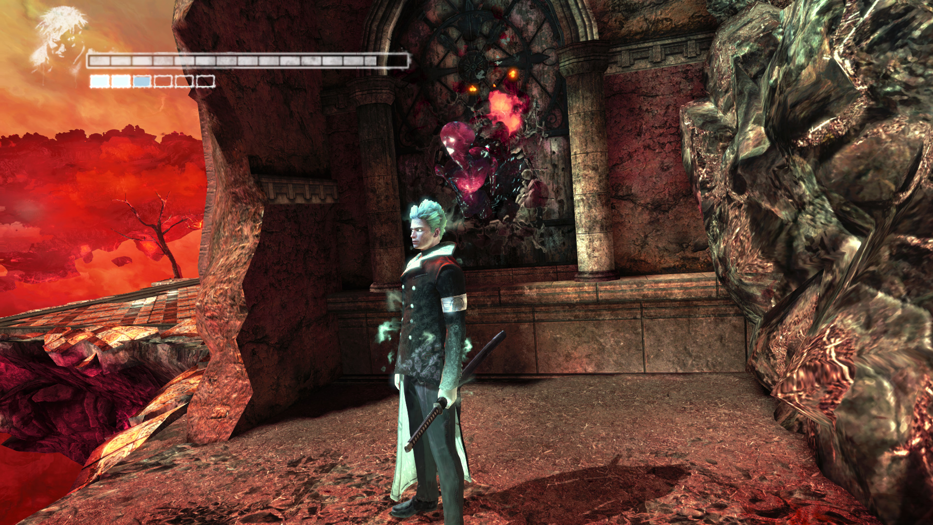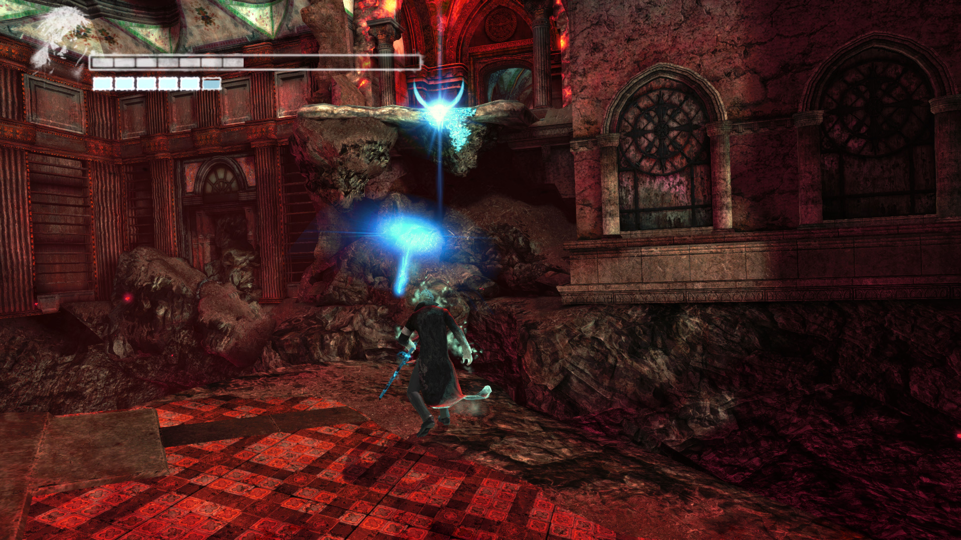 Menj tovbb. A szobornl ha kell, fejlesz s vsrolj, ha kell. Menj ki, mire becsukdik mgtted az ajt. Egy meteorszer szikla repl a platformra. Maga eltt ltod a kk fnyt, ahova menned kell. Ellenfelek jelennek meg. Minden ne ld meg, de legyen meg az a kpessged, hogy taposhatsz az ellenfeleiden. Ugyanis a segtsgkkel fel kell jutnod az ajt fl, hogy ott megleld s felszabadtsd a Elveszett Lelket (20/19.). Miutn meglted ket, az ajttl jobbra, ahol be van trve az plet oldala, ugord t, de teleportlj is, ha kell, hogy biztosan feljuss. Vagy gyesen az plet oldaln a kis peremen elmenve el jutsz oda. Odabenn egy let Kristly Tredket (20/17.) tallsz. A msik irnyba indulva a hz oldalnl Kis Dmoni Csillagot tallsz.
