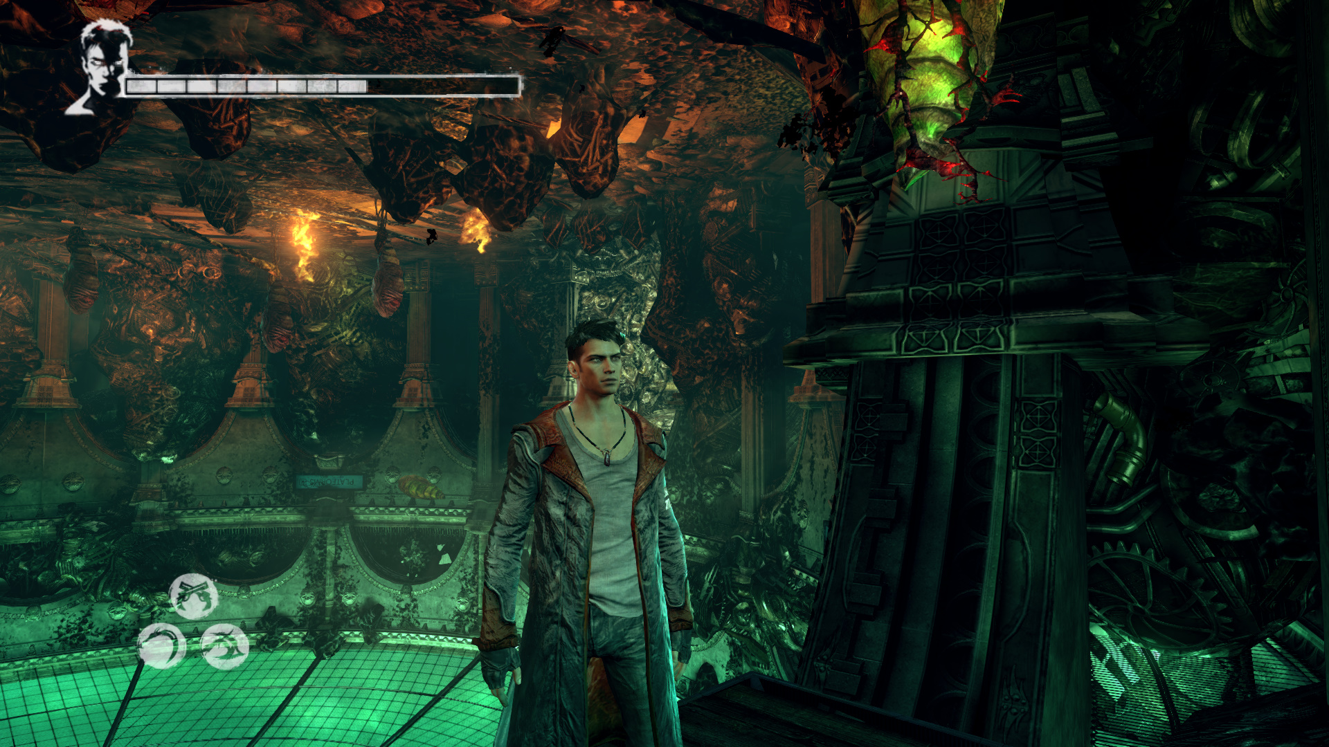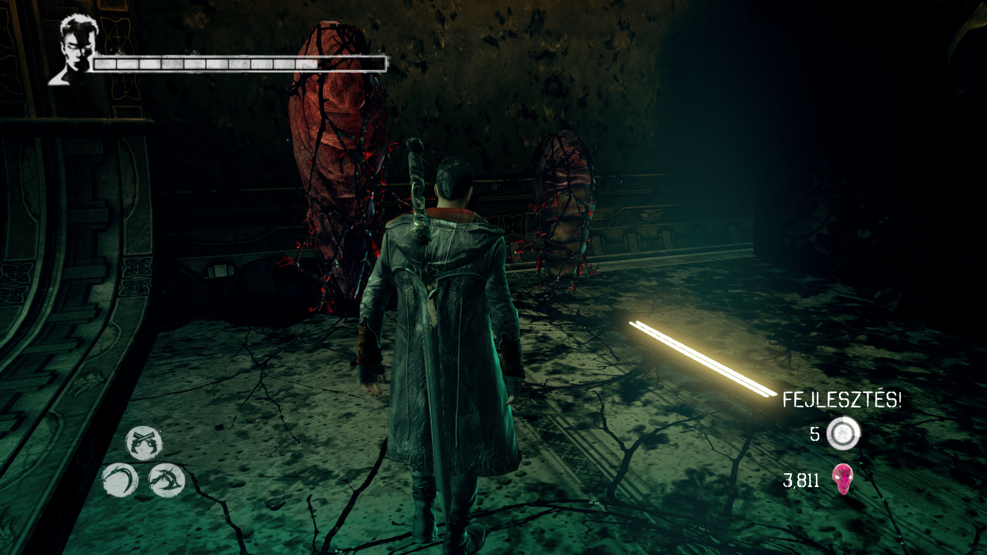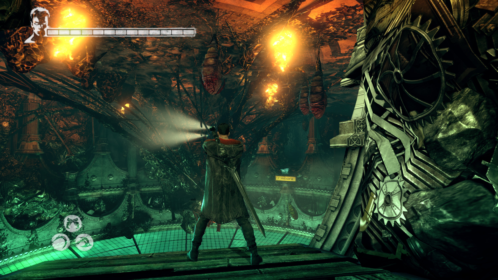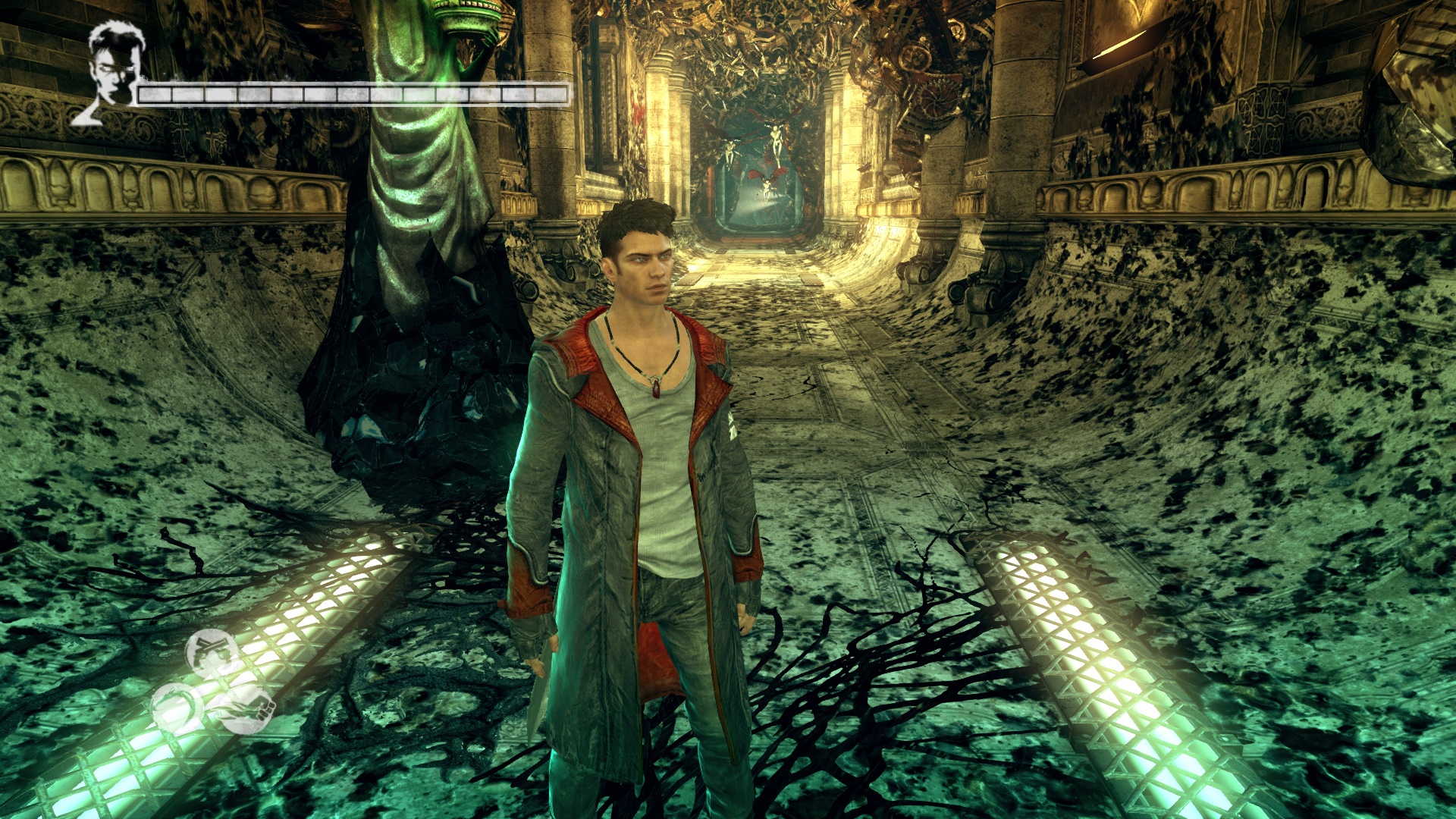 Intzd el a bestikat, hogy kvethesd a Hrpikat. Csak vigyz, mert itt is kzlekedik a vonat. sd szt a Gubkat. Mieltt a Hrpik utn mennl, szembe menj fel, kvetve a snt. Haladj addig, mg nem jobbra egy nyitott kaput tallsz. Gubkat s egy "Ezst" Kulcsot (21/13.) tallsz. Most menj a Hrpik utn. A lpcs aljn megjelenik egy Dmoni Szikra, ldd le. Ltod kivettkn Katet s Vergilt, miszerint szktt bnzkknt keresik ket. A kvetkez lpcs aljn is Dmoni Szikrt kell lelnd, az mgtt a falon Gubk vannak. Lerve sd szt a piros repedst. Szembe Gubkat tallsz, egy Divinity Statue-t, ahol ha szeretnd, intzd el, amit kell. Szembe a folyosn vgn lthatod a Hrpikat. Ahogy msz elre, figyelj jobbra, mert ott be tudsz menni egy kis helyre, ahol Gubkat tallsz s szabadthatsz fel egy jabb Elveszett Lelket (80/45.). Most pedig ezen a vonalon, a tloldalon menj t, ahol a dmoni fegyvereid egyikvel betrheted a repedst, ami egy Titkos "Ezst" Ajtt (21/13.) rejt. Itt is vannak Gubk.