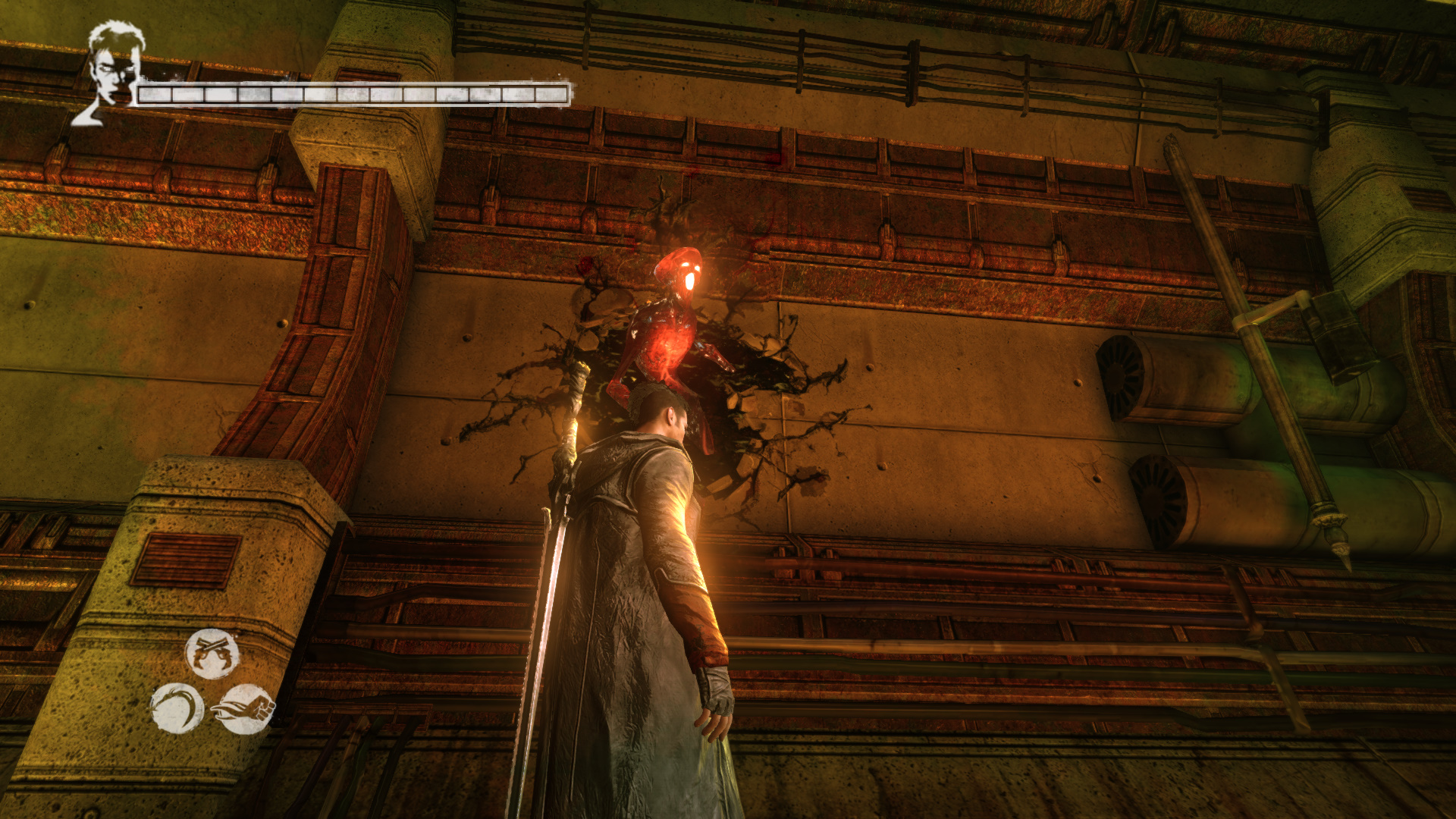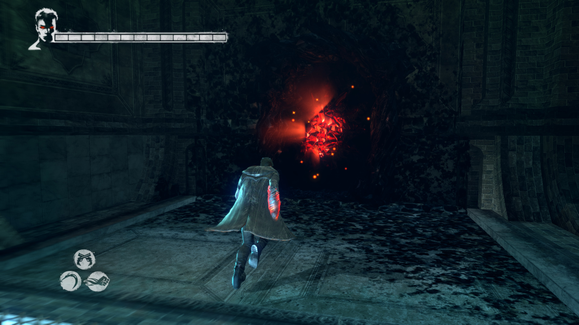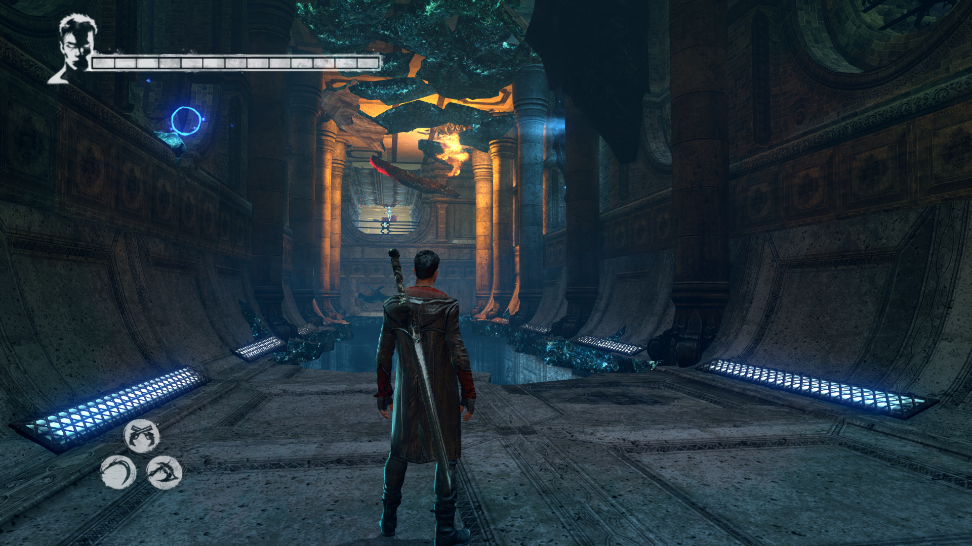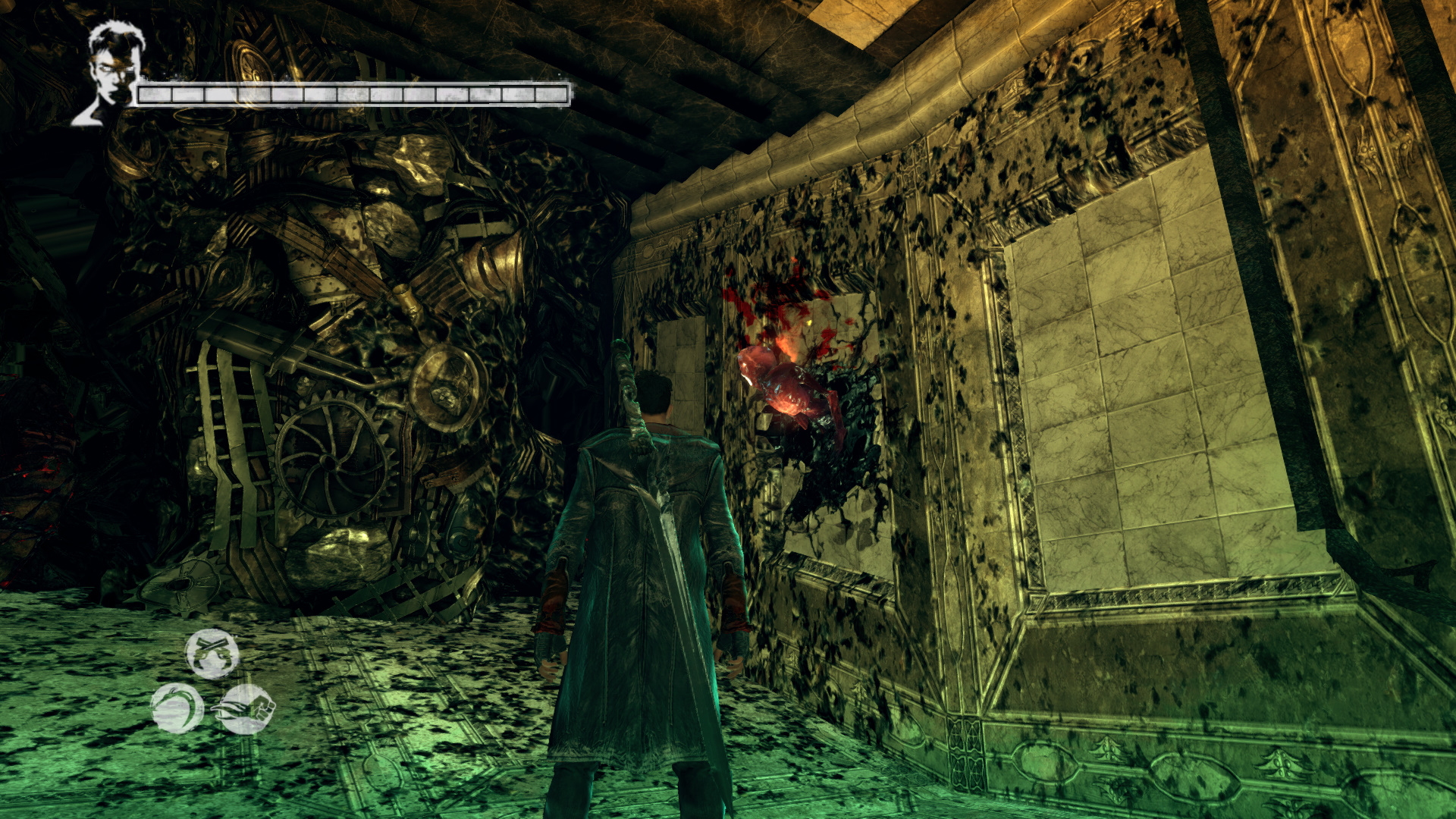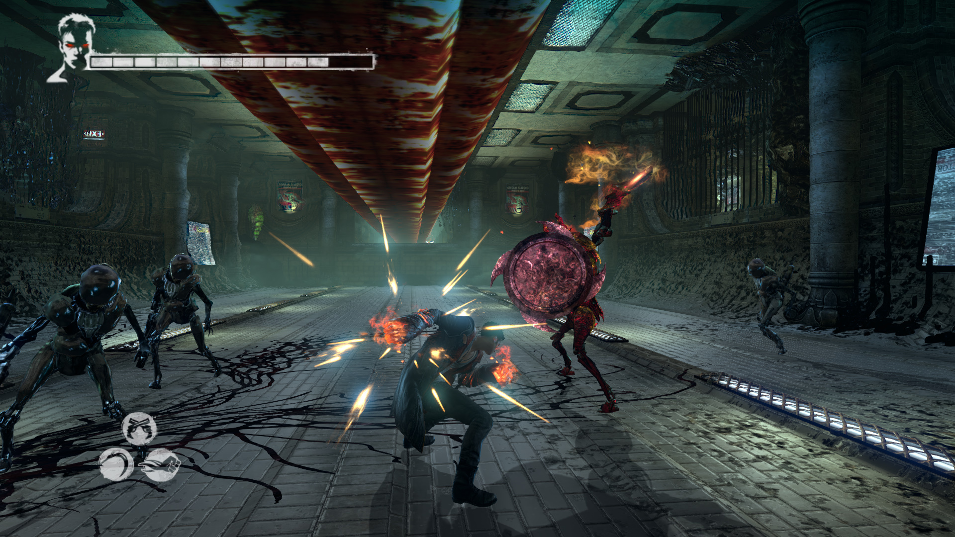 Intzd el a bestikat, hogy kvethesd a Hrpikat. Csak vigyz, mert itt is kzlekedik a vonat. sd szt a Gubkat. Mieltt a Hrpik utn mennl, szembe menj fel, kvetve a snt. Haladj addig, mg nem jobbra egy nyitott kaput tallsz. Gubkat s egy "Ezst" Kulcsot (21/13.) tallsz. Most menj a Hrpik utn. A lpcs aljn megjelenik egy Dmoni Szikra, ldd le. Ltod kivettkn Katet s Vergilt, miszerint szktt bnzkknt keresik ket. A kvetkez lpcs aljn is Dmoni Szikrt kell lelnd, az mgtt a falon Gubk vannak. Lerve sd szt a piros repedst. Szembe Gubkat tallsz, egy Divinity Statue-t, ahol ha szeretnd, intzd el, amit kell. Szembe a folyosn vgn lthatod a Hrpikat. Ahogy msz elre, figyelj jobbra, mert ott be tudsz menni egy kis helyre, ahol Gubkat tallsz s szabadthatsz fel egy jabb Elveszett Lelket (80/45.). Most pedig ezen a vonalon, a tloldalon menj t, ahol a dmoni fegyvereid egyikvel betrheted a repedst, ami egy Titkos "Ezst" Ajtt (21/13.) rejt. Itt is vannak Gubk.