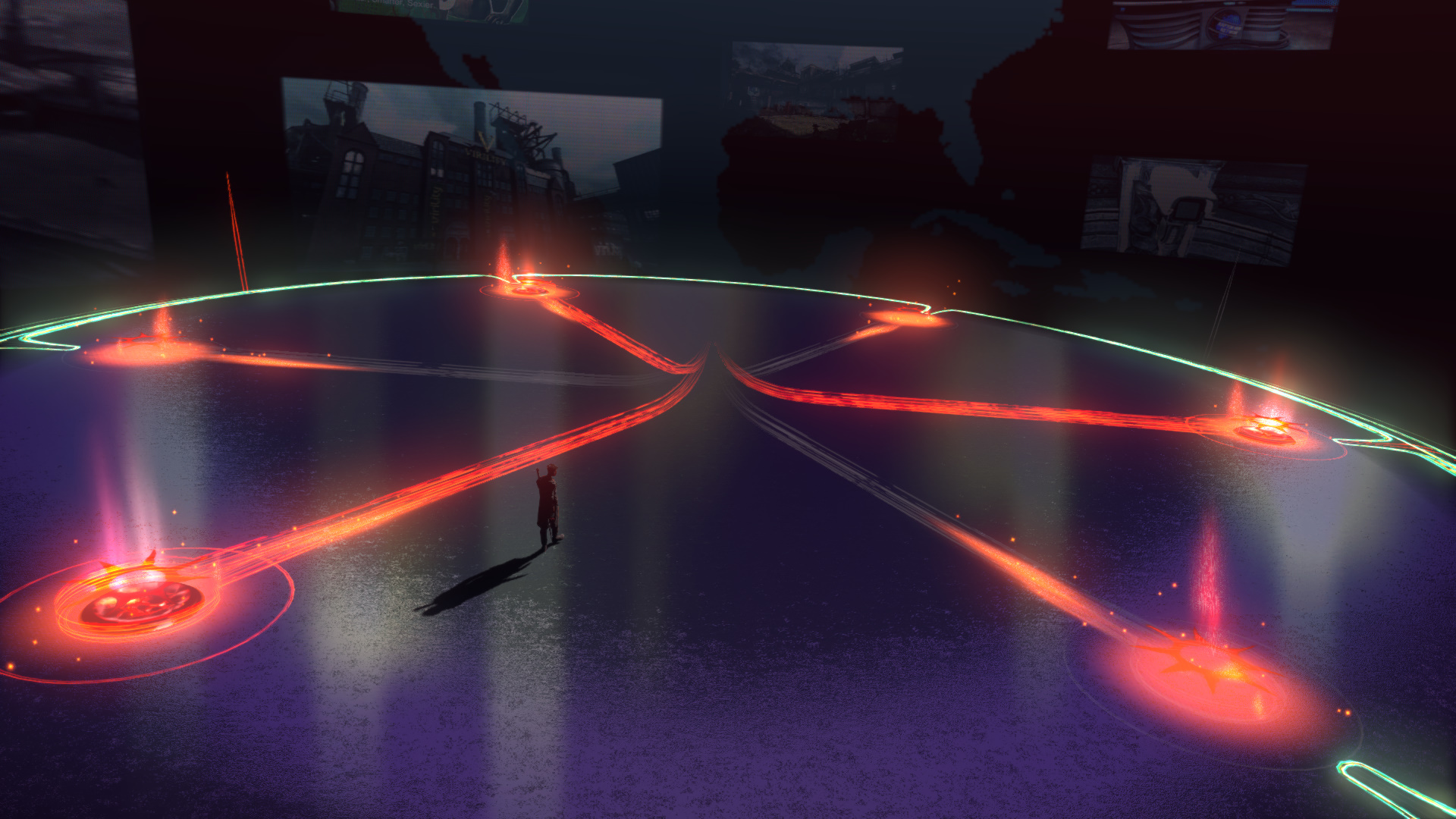 Megrkeztl a toronyba, s Barbas "sok szeretettel" vr. Ugrndozz tovbb hrom platformon. Hzd t s ldd ki magad. Utbbit ismteld meg. Ugorj tovbb, hzd t magad, ktszer a kockkon, a platform utn ktszer, mg nem bersz a nagy gmbbe. Rengeteg kivett van itt a vrosrl s a Virility-rl. A nagy kr alak helyen vonalakban hatg csillaghoz hasonl jel jelenik meg, melynek vgein piros kristlyok vannak. A kzepn megjelenik Barbas feje.