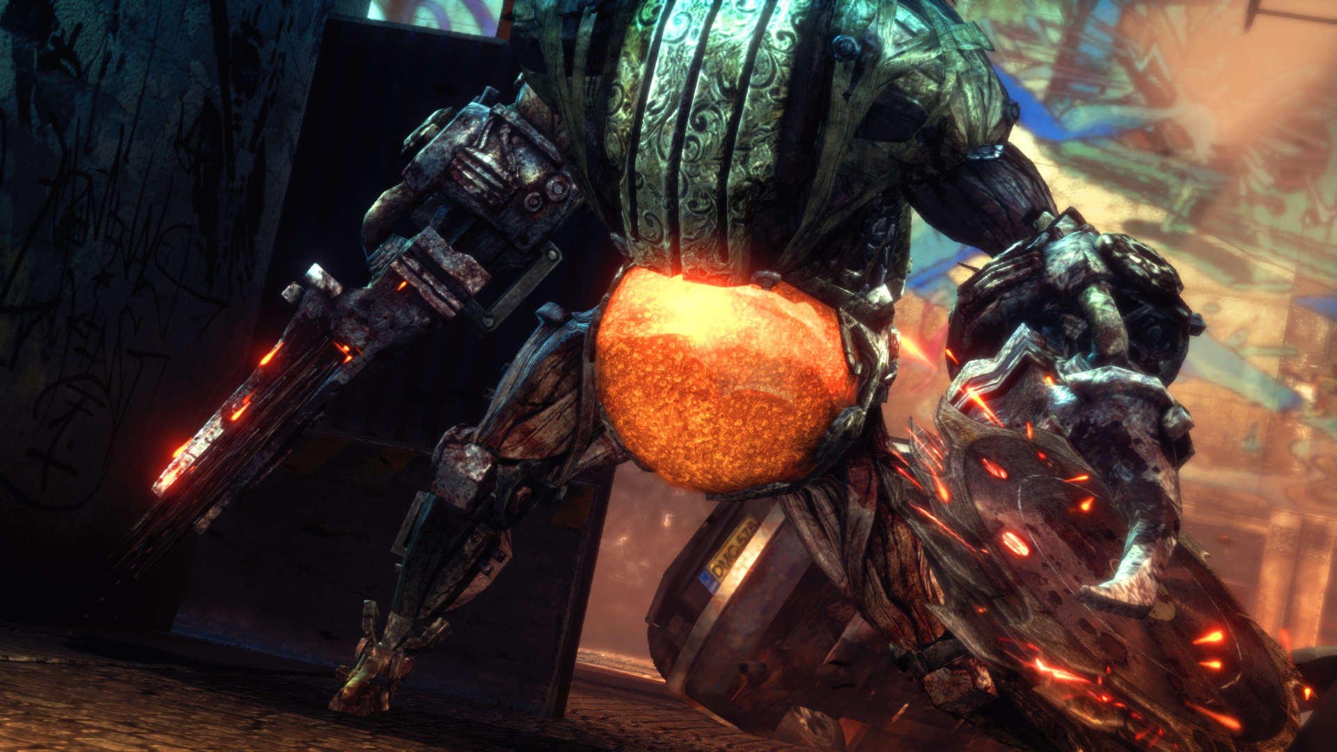 Fel futsz, s amikor az suhintana a frsszel, elugrasz kzte s a fal kztt a hta mg. Ez az ellenfl ers, mint a Tyrant. A hasn ltsz egy narancssrga gmbt. Dmoni fegyverekkel knnyebb srlseket tudsz okozni. Amikor a kzelben vagy, vigyz, mert a frszekkel megthet. Ha elg megttted, s vrsdik a teste, menj a kzelbl, mert felrobban, s a robbans szele krt tehet benned. Jn mg egy raj, de te elintzed ket gyorsan. Ahol jttl, ott eltorlaszol az t, de mutatja merre kell menned.