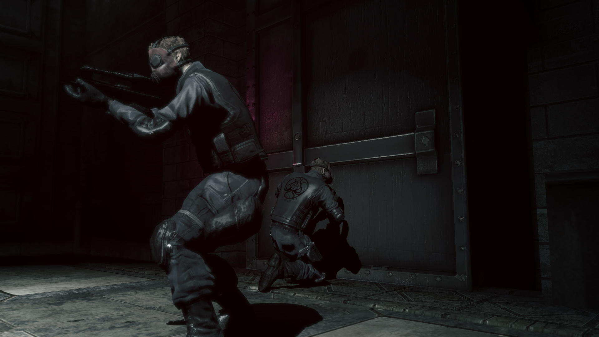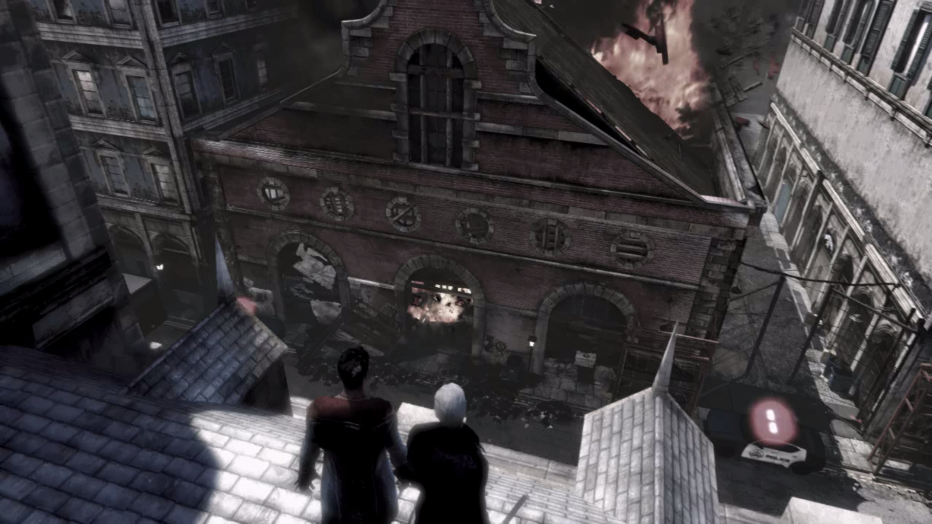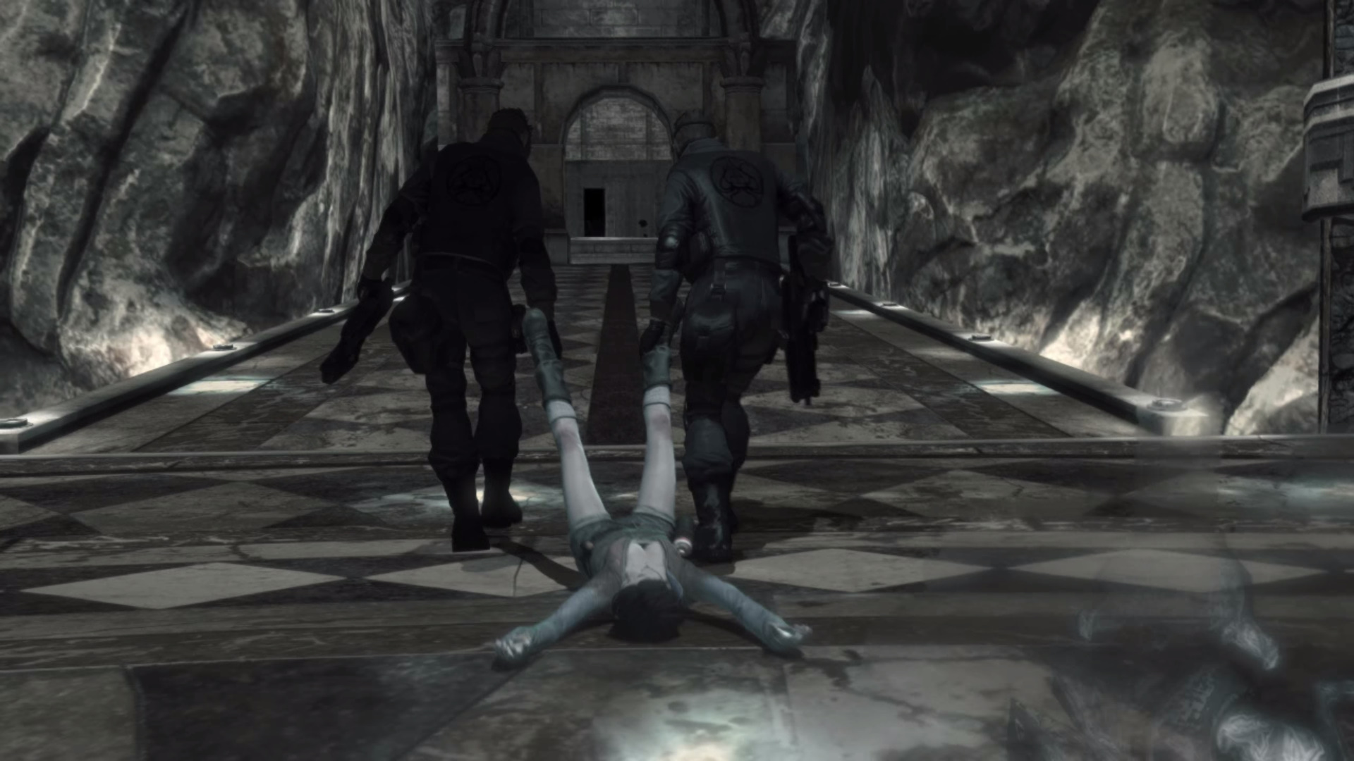 Kvesd fel a lpcsn, majd jobbra, t azon az ajtn, melyen a katonk utat trtek. Fel a hossz lpcsn, szembe Kat azonostatja magt az ajt kinyitshoz. Jobbra, ismt jobbra, majd balra egy folyosra, s fel a lpcsn. Katonkba botlotok, akik rtatlanokat lnek le.