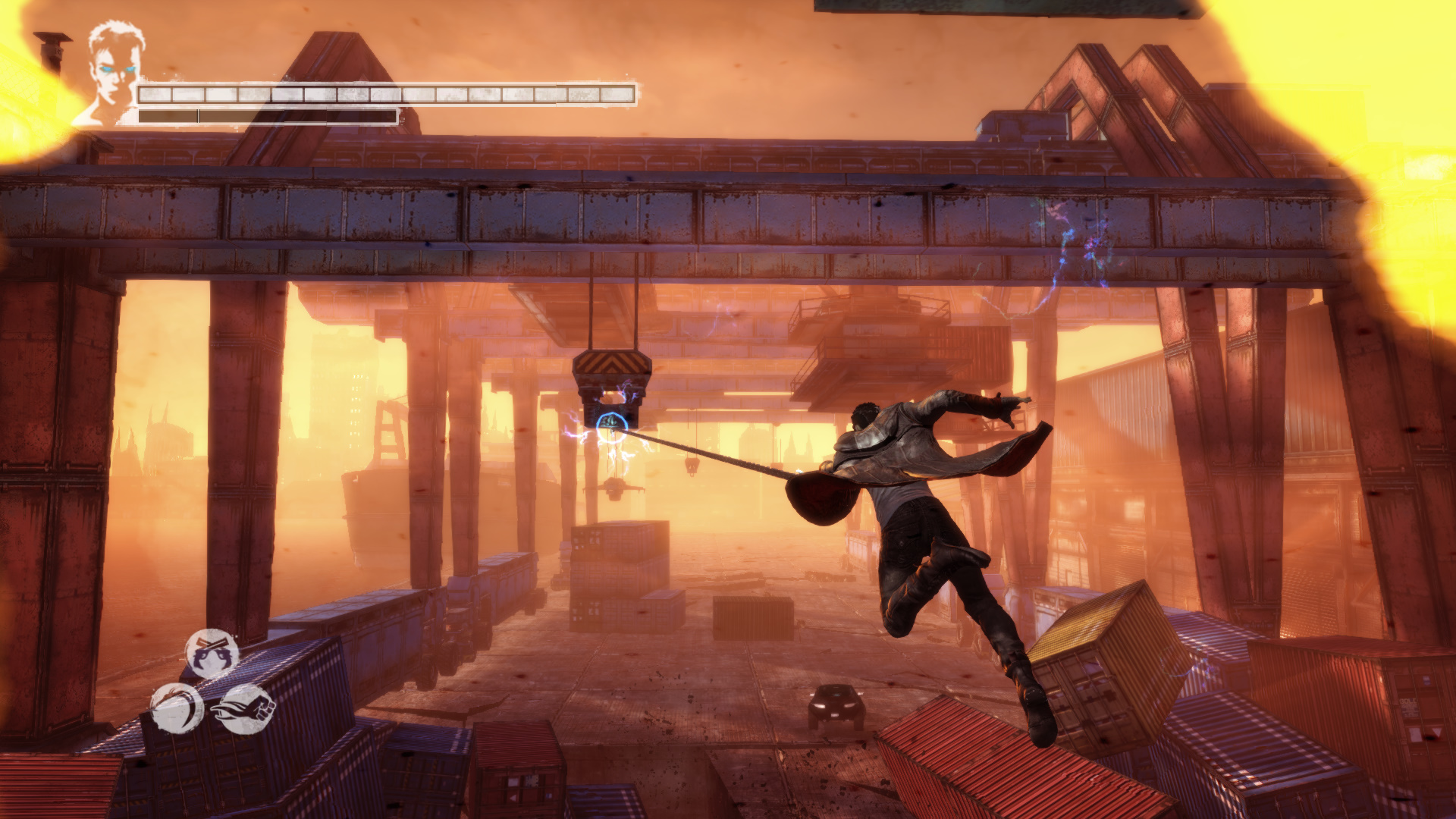 Indulj el, s segts rajtuk. Hzd fel magad az autra, onnan jobbra a kontnerre, majd hzd el a msikat ellk, s tovbb tudnak ugratni. Ha nem teszed meg, neki replnek, s meghalnak. A kvetkeznl szintn hzd oda magad az autra. Mieltt tennl brmit, gyere le balra a sok kontner kzz, aztn htra, ahol pkokat lhetsz le, trgyakat thetsz szt s "Rz" Kulcsot (21/17.) vehetsz fel. Ugorj a Vergilk eltt lv kontnerekre, s Eryx-szel a levegbe ugorva sd meg hromszor.