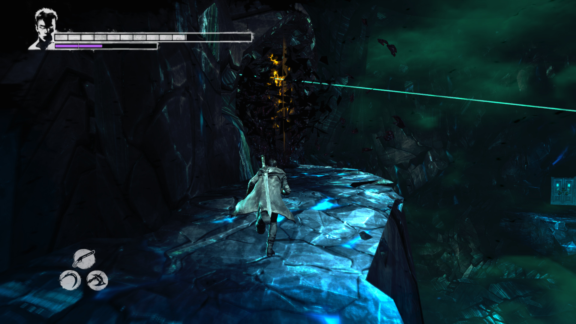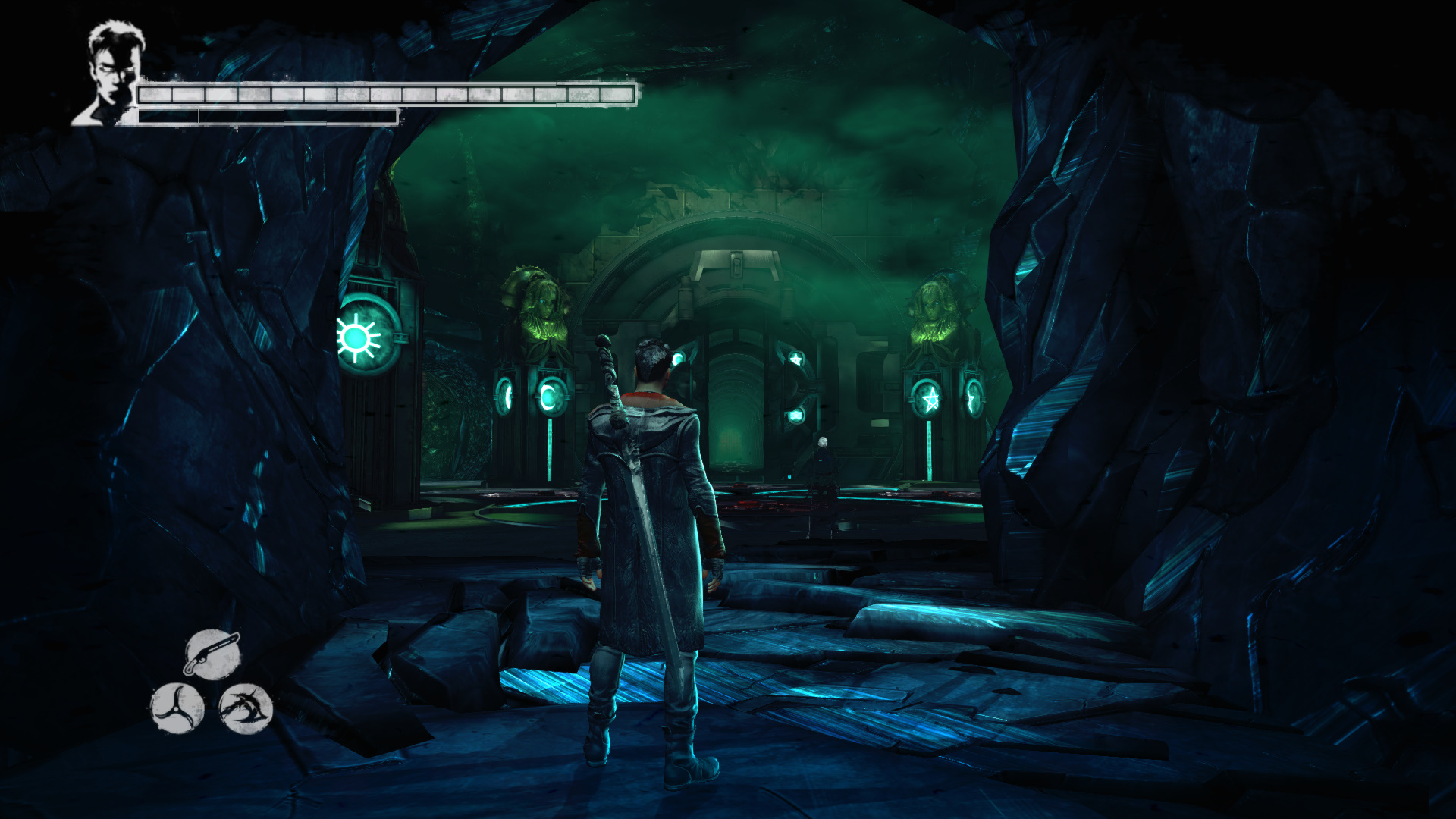 Megrkeztl a bejrathoz. A teremben ngy genertor van, ennek kzepn a padln egy szerkezet. Vergil mr ott van.