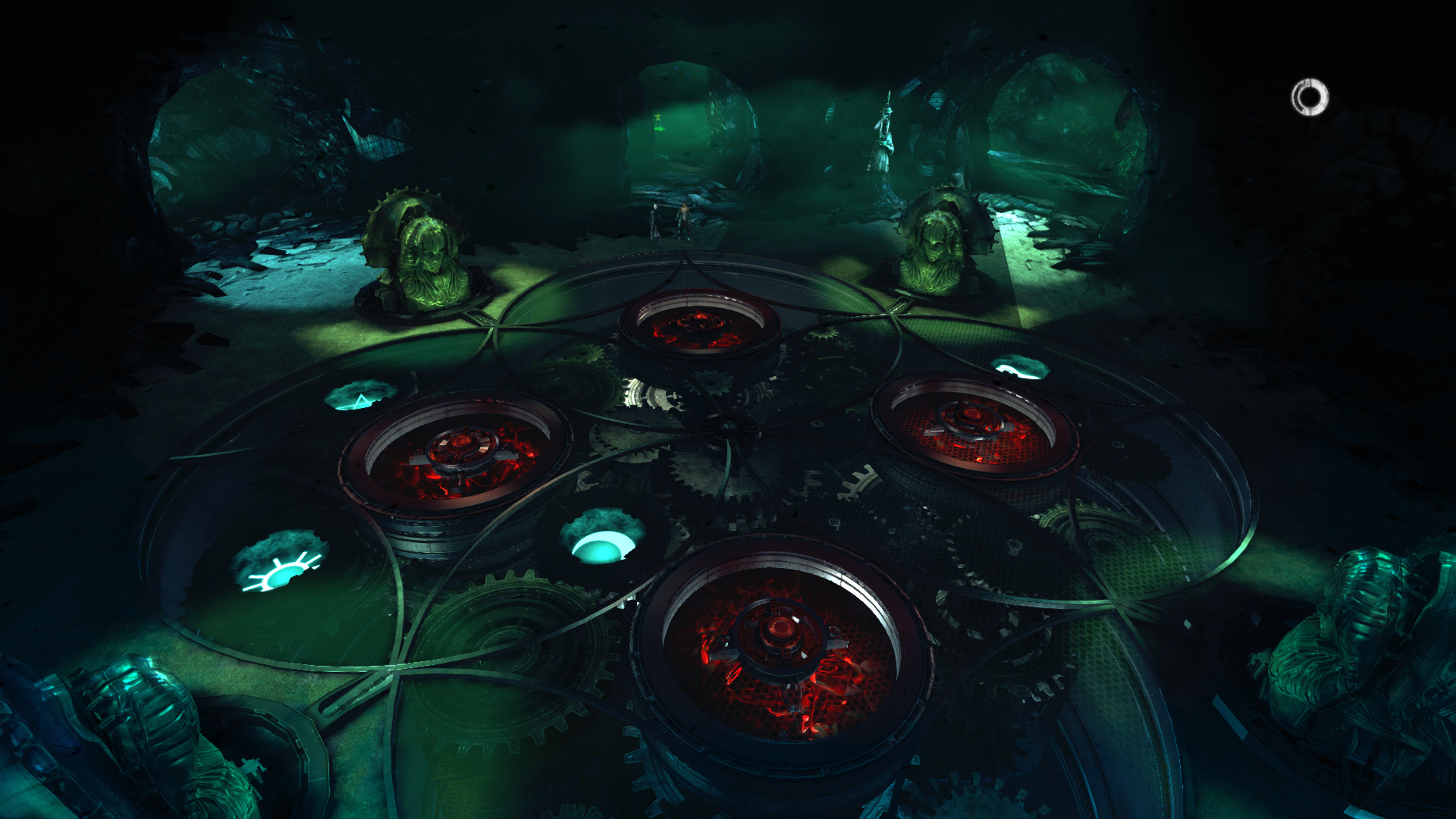 A kis beszlgets utn, ahogy Vergil is elmondta, a ngy vezetket a megfelel szerverhez kell kapcsolnod. Ha jl megnzed a padlt, fogaskerekek ltszdnak, ngy kristly, melyeket Eryx-szel a levegbl kell megtnd. Olyankor az a szerkezet megfordul. Teht, egyszer a dolgod. Ahogy az oszlopokon, gy a szerkezetben is ugyanazok a jelek vannak benne. gy kell teht forgatnod ket, hogy a Hold ugyanahhoz legyen csatlakoztatva. Persze van, amelyiket gy kell, hogy tforgatnod a tloldalra, mert gy ll.