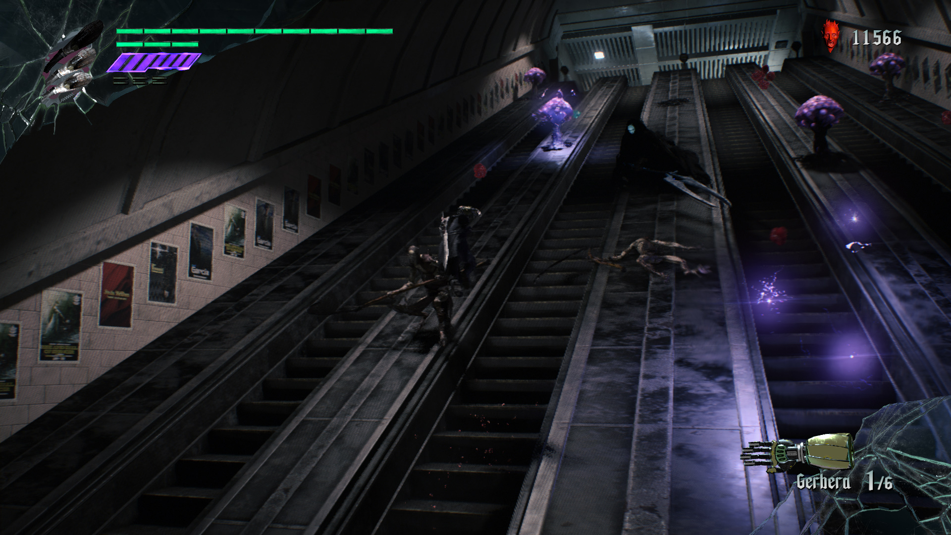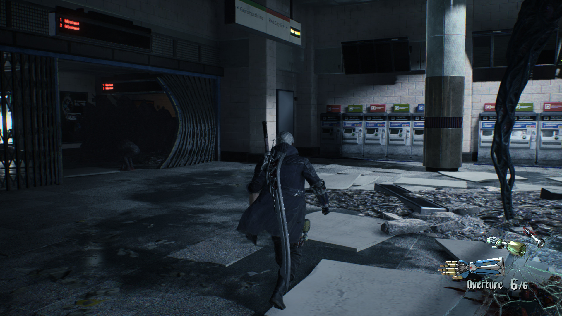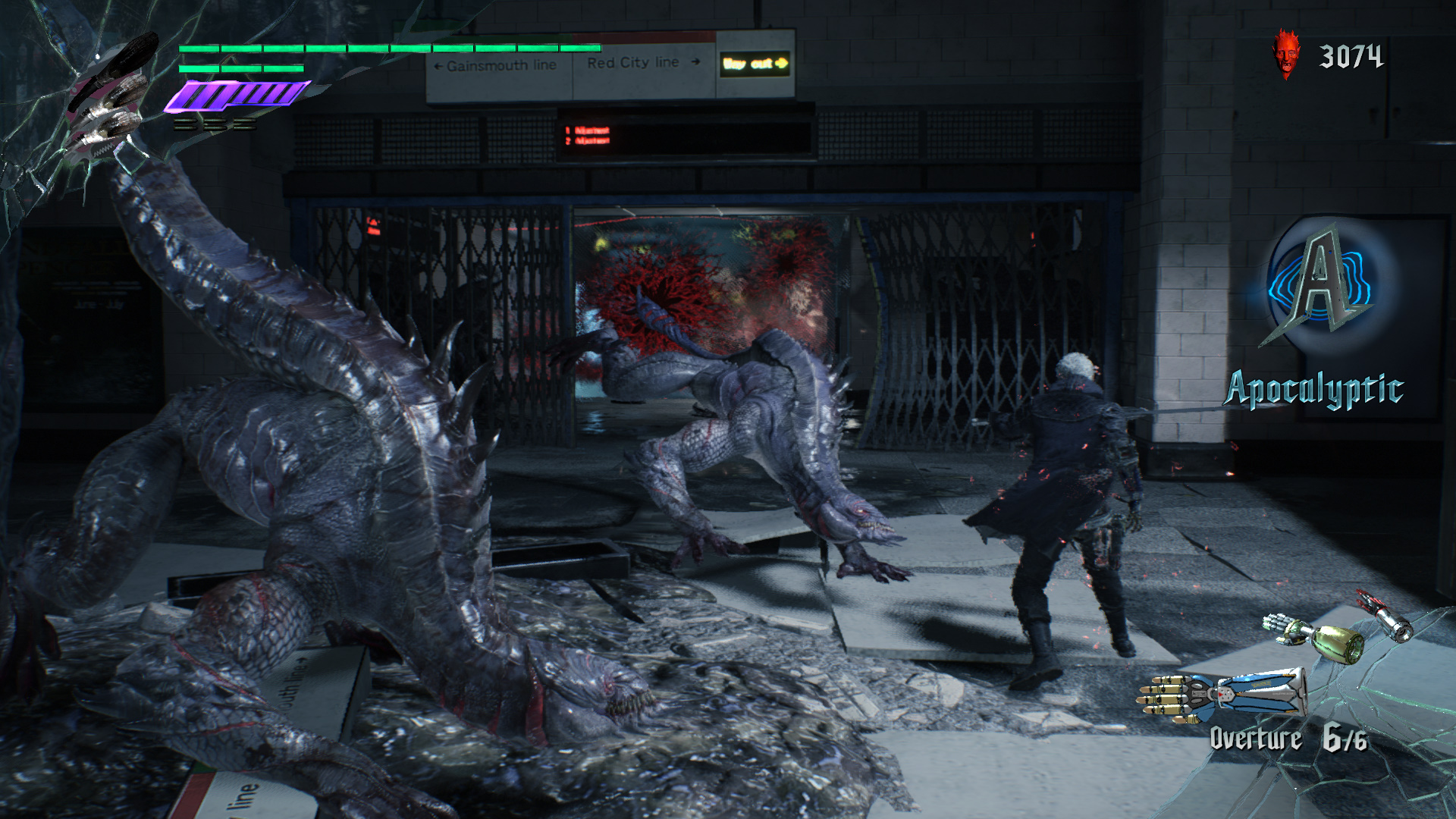 Amint az ajthoz rsz, eld ugrik az imnt, a vonat tetejn megjelent bestia. Vgezztek ki trsaiddal. Jobbra trd ssze a kis Vrs Gmb Kristlyt, majd haladj a msik irnyba, le a lpcsn. Szembe is a kis Vrs, jobbra a Zld Gmb Kristlyt trd ssze. Le a lpcsn, harcolj, gyjts be minden gmbt, majd menj tovbb a kijratot jelz ajtn. A metr alagtba rtl. Balra mehetnl, de utadat llja a gykr, gy jobbra puszttsd el a Vrrgt s az elektromos gmbt, vedd fel a Vrs Gmbt, a metr eltt trd ssze a kis Vrs Gmb Kristlyt, majd menj be az llomsra. Balra a vonaton s azon tl Vrs, a msik vgben Arany Gmbt vehetsz fel. Ha a mozglpcs fel nzel, ott azt bentte a gykr, gy nem tudsz felmenni, azonban Nerot ott is lthatod harcolni. A lpcs mellett balra is vedd fel a Vrs Gmbt, a lpcsn a Fehret, a tl oldalon a Zldet. Intzd el a dmoni szjat a dmonokkal egytt, majd a szj mgtt megnyl ton menj tovbb.