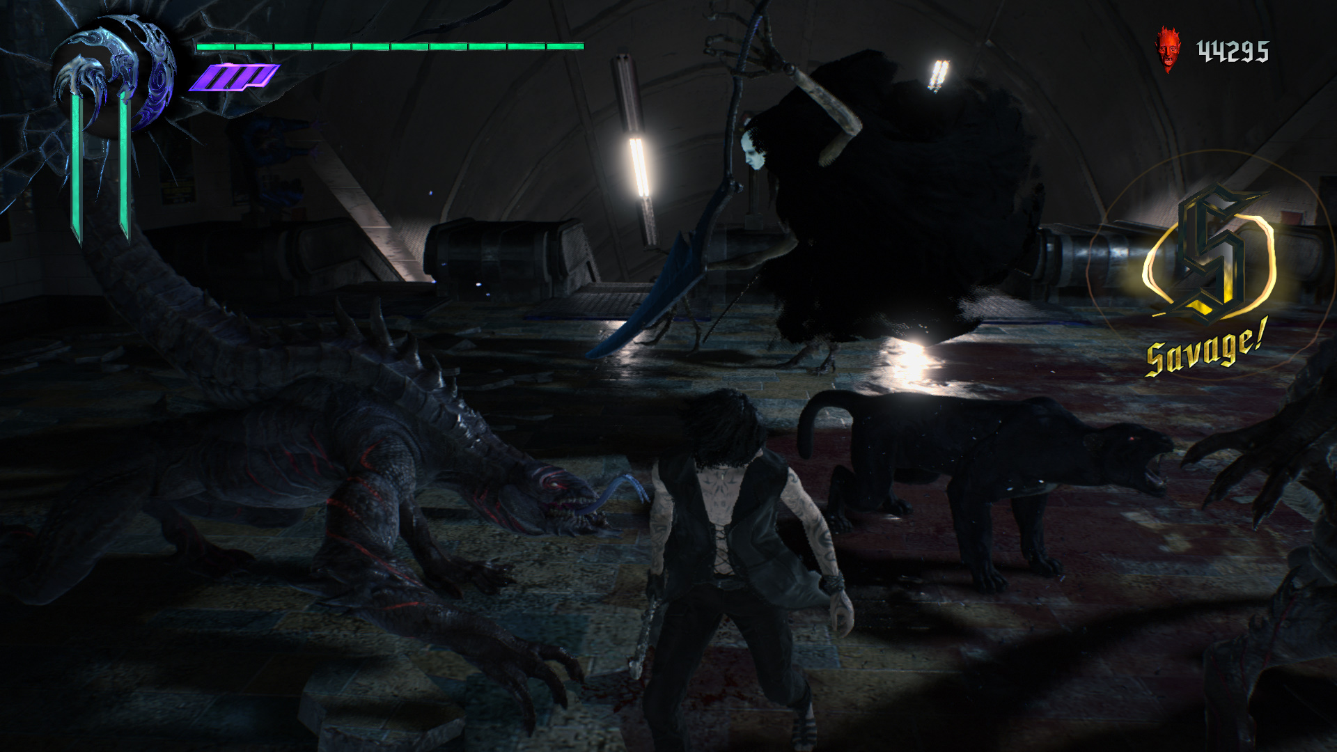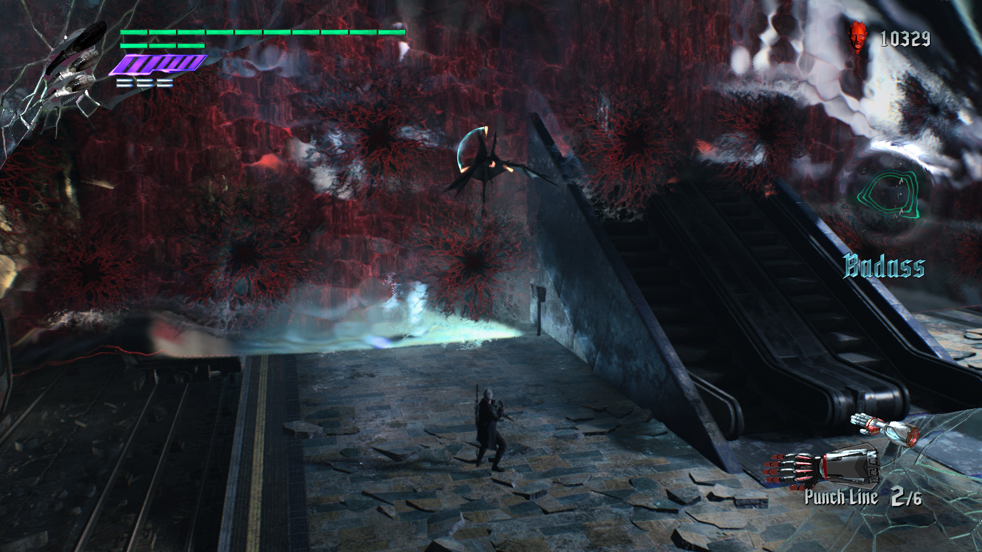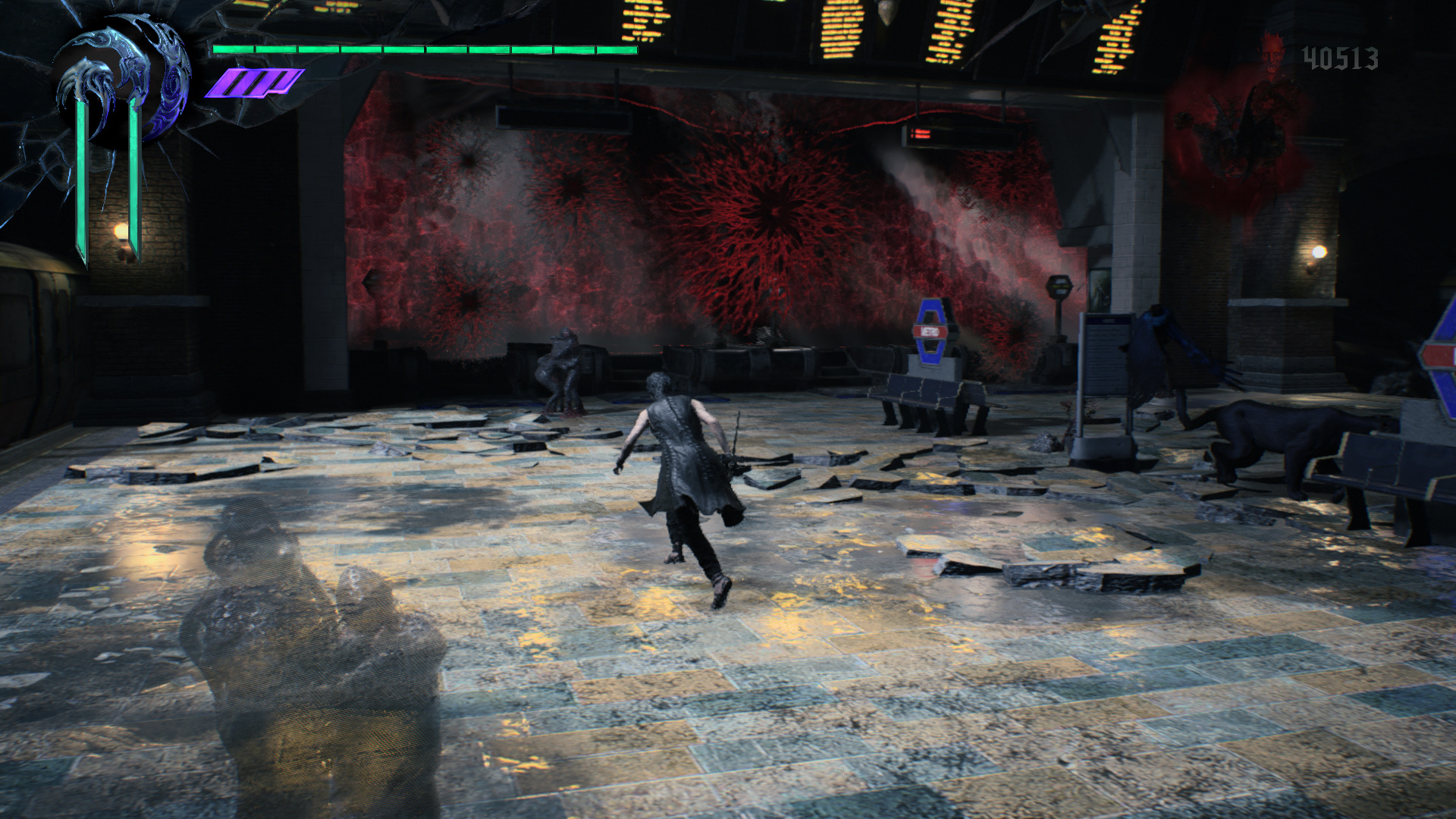 Amint az ajthoz rsz, eld ugrik az imnt, a vonat tetejn megjelent bestia. Vgezztek ki trsaiddal. Jobbra trd ssze a kis Vrs Gmb Kristlyt, majd haladj a msik irnyba, le a lpcsn. Szembe is a kis Vrs, jobbra a Zld Gmb Kristlyt trd ssze. Le a lpcsn, harcolj, gyjts be minden gmbt, majd menj tovbb a kijratot jelz ajtn. A metr alagtba rtl. Balra mehetnl, de utadat llja a gykr, gy jobbra puszttsd el a Vrrgt s az elektromos gmbt, vedd fel a Vrs Gmbt, a metr eltt trd ssze a kis Vrs Gmb Kristlyt, majd menj be az llomsra. Balra a vonaton s azon tl Vrs, a msik vgben Arany Gmbt vehetsz fel. Ha a mozglpcs fel nzel, ott azt bentte a gykr, gy nem tudsz felmenni, azonban Nerot ott is lthatod harcolni. A lpcs mellett balra is vedd fel a Vrs Gmbt, a lpcsn a Fehret, a tl oldalon a Zldet. Intzd el a dmoni szjat a dmonokkal egytt, majd a szj mgtt megnyl ton menj tovbb.