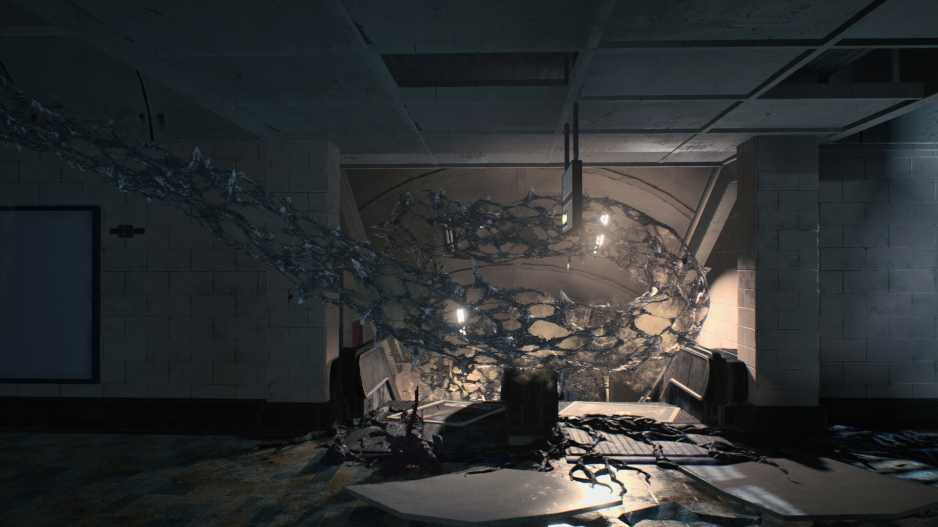 Az ajtn tmenve egy folyosra jutottl, onnan pedig az lloms fel tartasz, ahol hemzsegnek a dmonok. Ltsz egy nagy szjszer valamit, amibl dmonok jnnek el. Puszttsd el, hogy ne jjjn ki mg tbb dmon. Tovbb trd ssze a kis Zld Gmb Kristlyt, balra le a lpcsn, a kapun thaladva harcba kerlsz. Akiket lttl a metrban ellenfeleket, azok is itt vannak. Gyjtsd be a gmbket, vegyl fel Felszerelst, majd amerre megnylt a jrat, indulj. Szembe a kapu eltt trd ssze a kis Vrs Gmb Kristlyt.