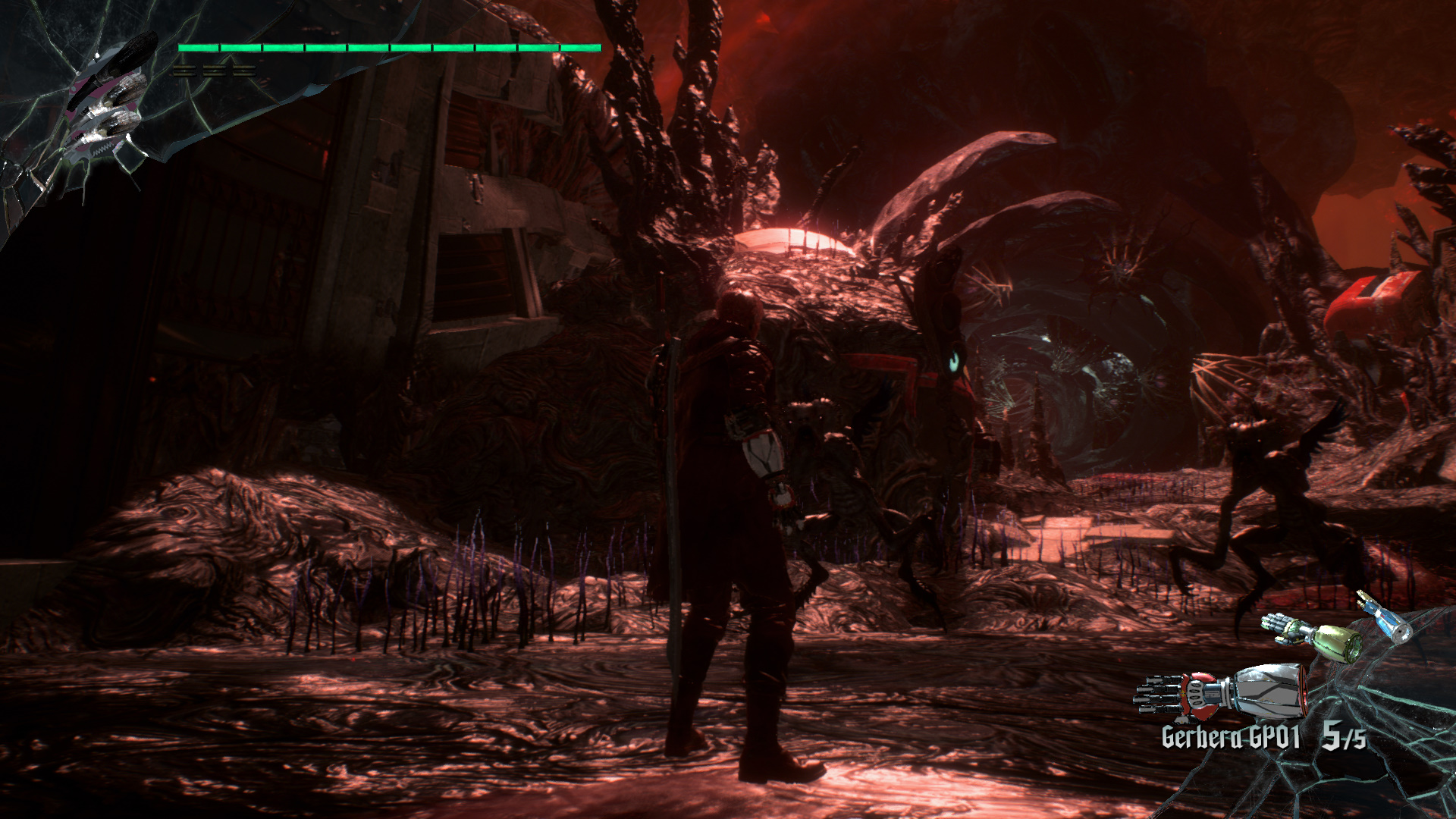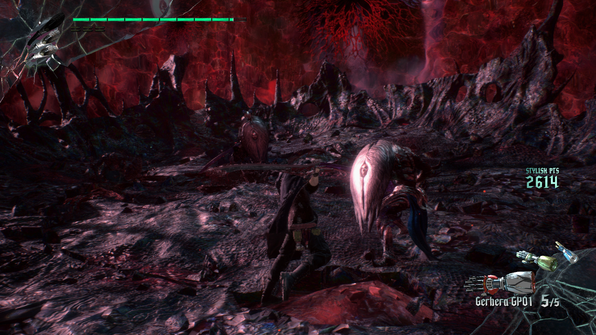 Mg vrsz, felfekdtl egy sziklra pihenni, jsggal a kezedben, a kardod az ledben. Nico mr jn is. Nyjtzkodsz, de lepottyansz oldalra. Sikeresen talpra rkeztl. Felfigyelsz a furgon fnyeire. Elkapod a kardodat, elugrasz elle, mg az jsg is sikeresen visszakerlt. Ha vgeztl, a furgon msik oldaln kell tovbb menned, de eltte nzz el jobbra. Van itt egy vzszintesen kintt szikla, amire fel lehet ugrani. A tloldalra gy tudsz, hogy Duplaugrssal s a Gerbera robbansval. Csak az idztsre figyelj. Ha sikerlt, ugorj fel a szikln, menj, ld meg a dmonokat, gyjtsd be a Vrs s az Arany Gmbt. Gyere vissza, s ahol felugrottl, lenn menj ki a vgre, ahol kis Vrs Gmb Kristlyokat trhetsz ssze.