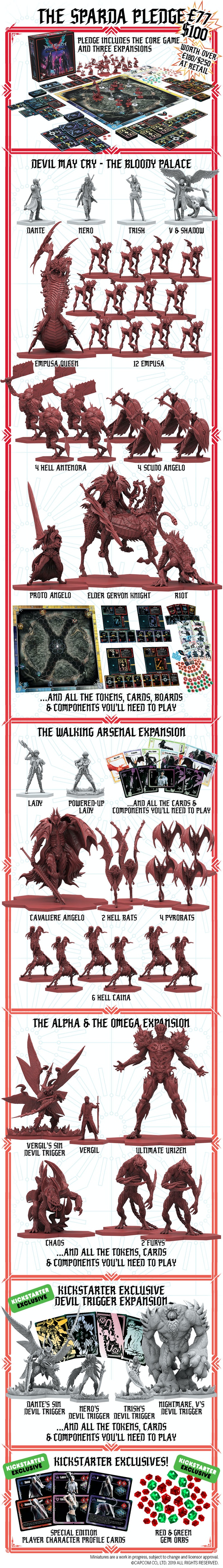 * The Alpha & Omega Expansion: 1 Vergil, 1 Vergil Sin Devil Trigger, 1 Ultimate Urizen, 1 Chaos, 2 Fury bbut s tovbbi zsetonokat, krtyalapokat s alkotelemeket tartalmaz.